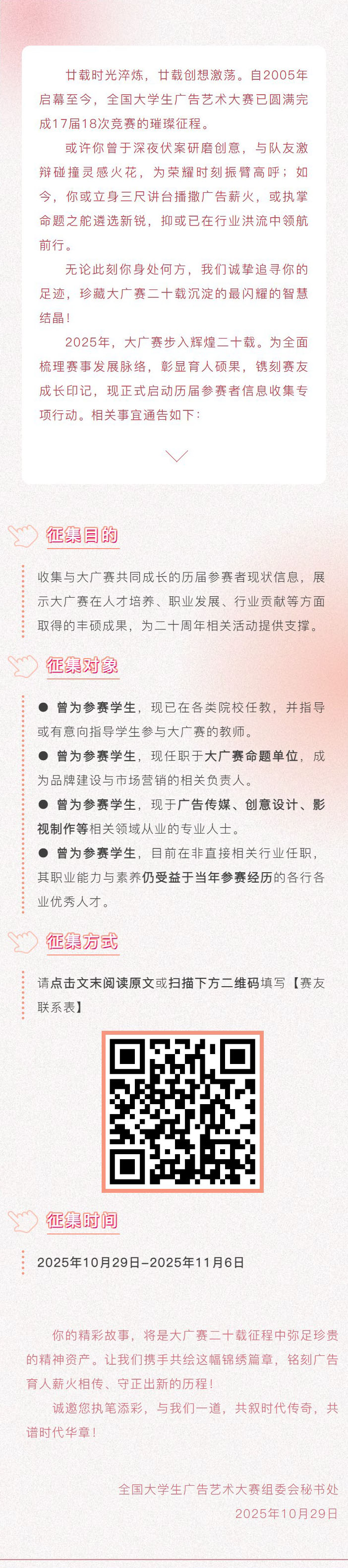 大广赛华彩20年赛友联系表征集开启