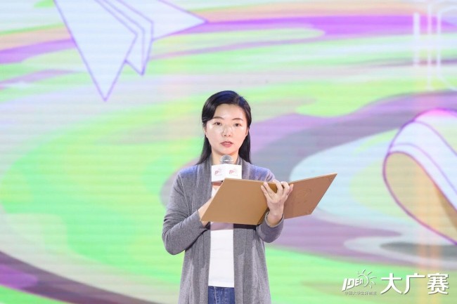 郑州大学美术学院沈晓源作为获奖学生代表发言,她感谢大赛搭建的专业平台与指导教师的悉心培育,分享了作品打磨过程中的探索与成长,坦言竞赛让自己领悟到设计需兼顾美感与实用,未来将持续创作兼具人文关怀与社会价值的作品。