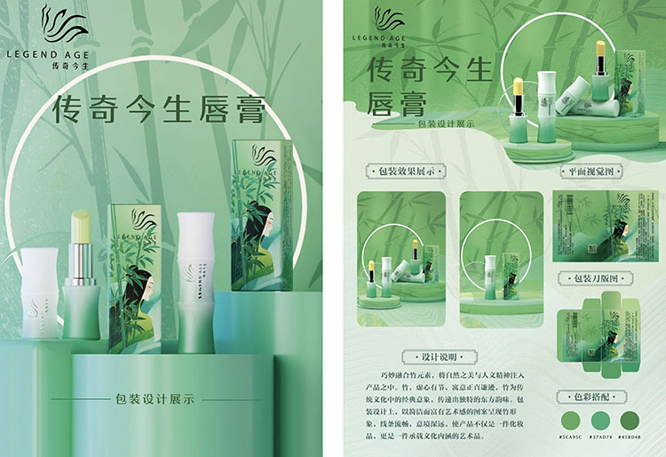 传奇今生创立于2004年,既是一个深耕美业21载的经典国货美妆品牌,也是一个为大众打造的一站式智慧轻创业平台。传奇今生以“让世界看见中国美”为品牌愿景,以“国货匠心”为原则,坚持践行“自有工厂+自主研发+自主生产”,目前已拥有专利技术20+项,产品品类涵盖护唇、护肤、美妆、日用等40+个单品。让我们一起来看看本届大广赛传奇今生命题的优秀获奖作品吧!