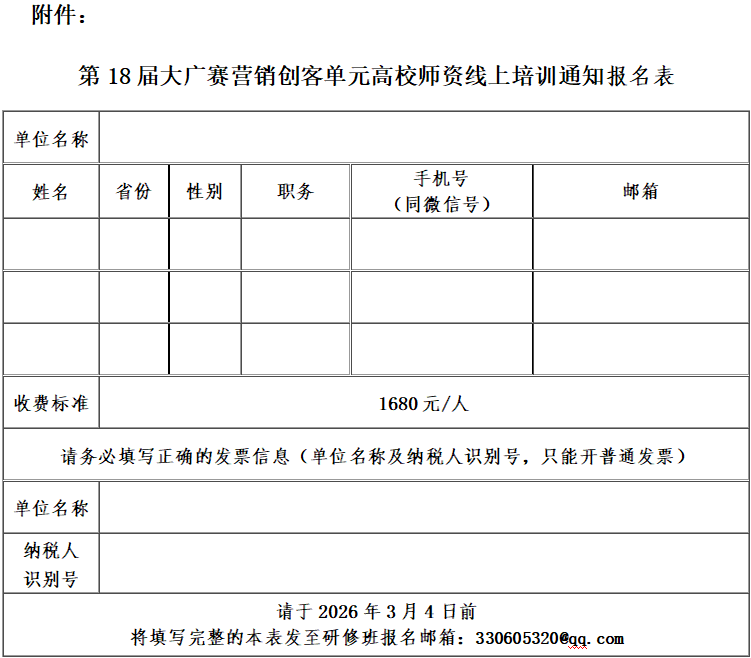 2、报名方式:填写报名表并发至会务组邮箱:330605320@qq.com(报名信息以报名表为准),请于2026年3月4日15:00前发至邮箱。