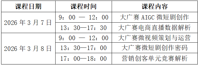 2026年第18届大广赛营销创客单元将聚焦创意内核与流量势能,深化大广赛在智能视听领域的实践教学成果转化。本单元以品牌营销产品为命题,结合高等院校实践教学,让学生通过挖掘和解析企业品牌营销进行实践创作,推动网络直播、微视频、微短剧、AIGC微短剧创作新兴领域的人才培养。 第18届大广赛营销创客单元师资线上培训将于2026年3月7-8日举办,欢迎全国各高校教师自愿报名。
