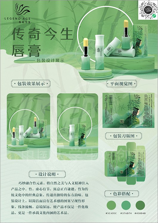 命题名称:08 传奇今生 参赛编号:Ab08-22-024-0039 作品名称:竹影摇青包装设计