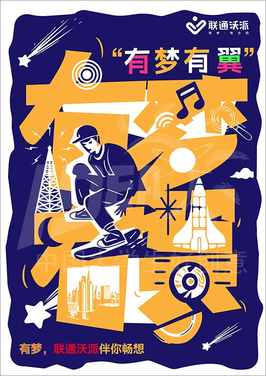 命题名称:01 联通沃派 参赛编号:Aa01-02-008-0016 作品名称:笔画共连 梦想同频