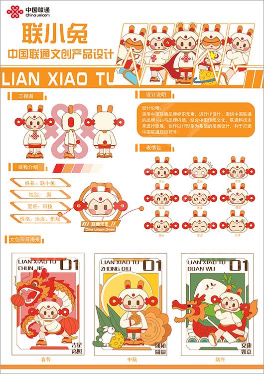 命题名称:02 联通文创 参赛编号:Aa02-26-008-0001 作品名称:联小兔ip形象设计