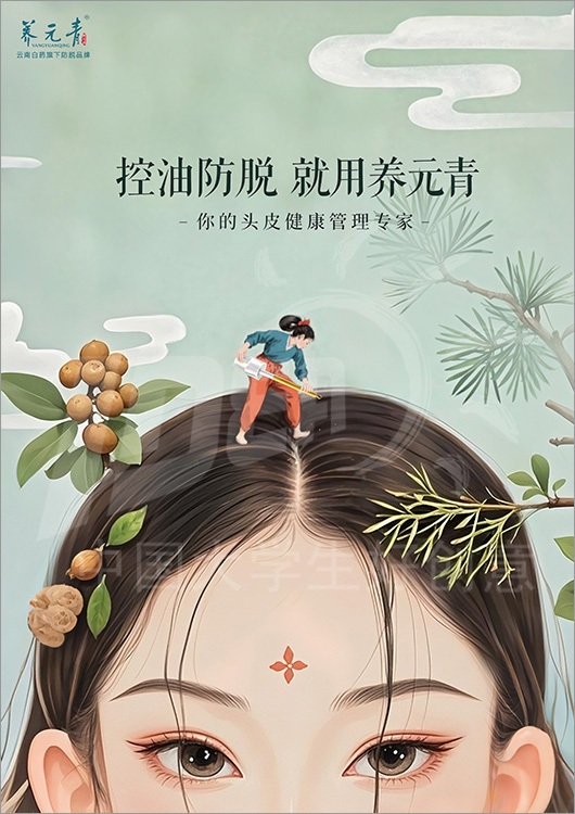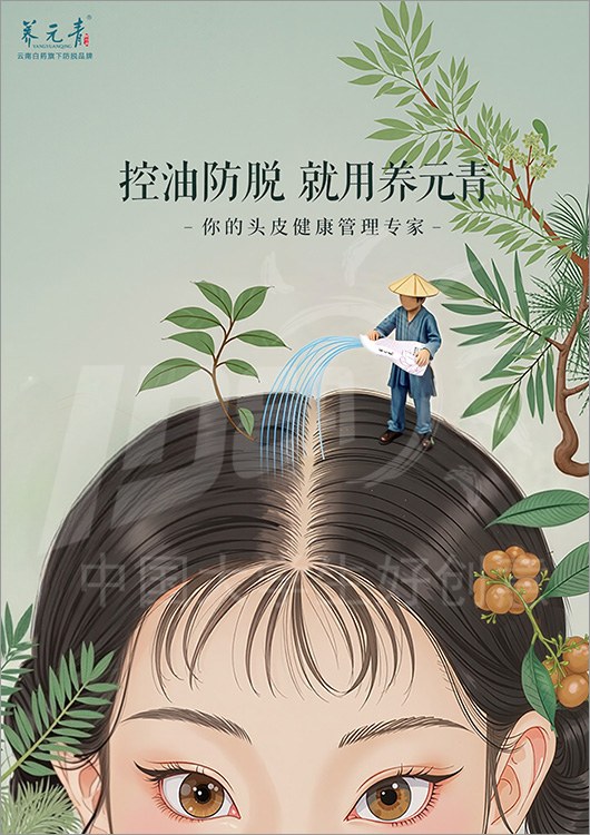 命题名称:14 养元青 参赛编号:Aa14-09-002-0001 作品名称:一寸头皮一寸田,养元耕耘到发间