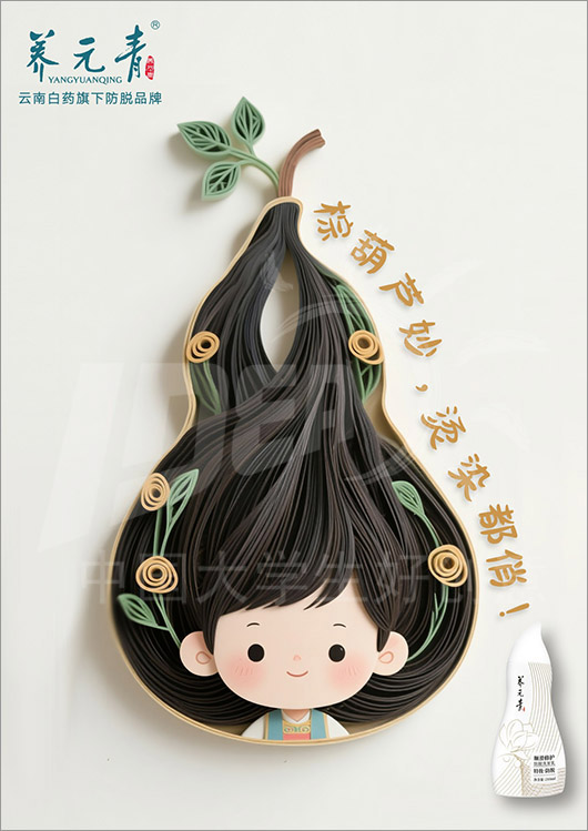 命题名称:14 养元青 参赛编号:Aa14-22-051-0026 作品名称:养元青葫芦妙方,发量稳稳不慌