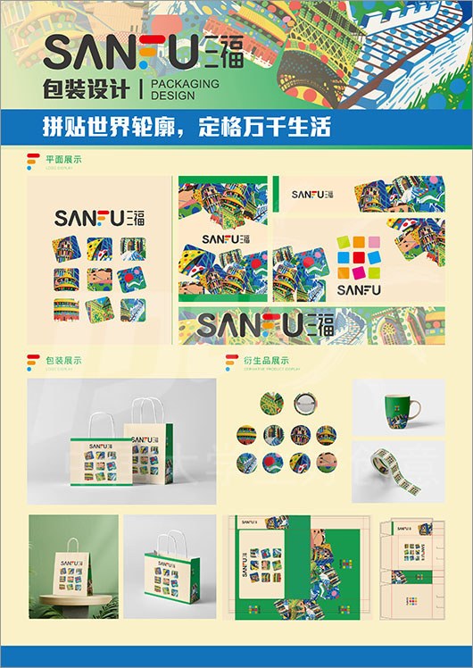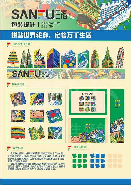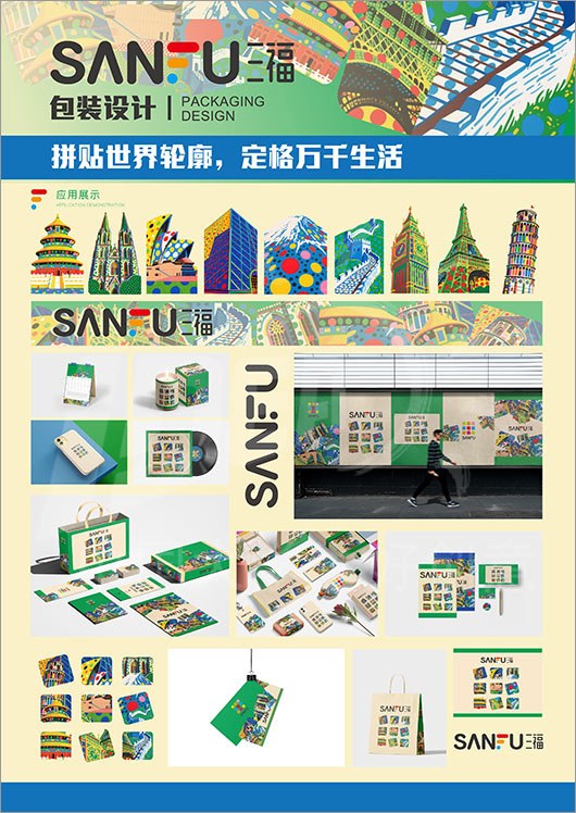 命题名称:07 SANFU三福 参赛编号:Ab07-11-014-0001 作品名称:拼贴世界轮廓,定格万千生活