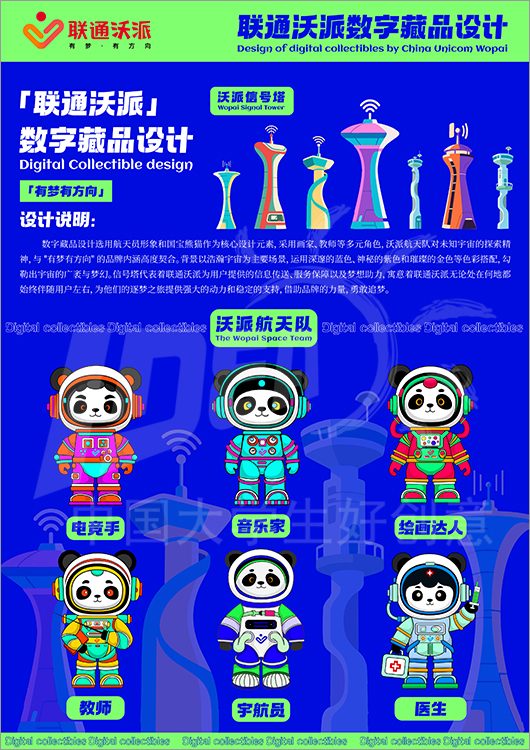 命题名称:01 联通沃派 参赛编号:Aa01-10-069-0006 作品名称:联通沃派航天队数字藏品设计