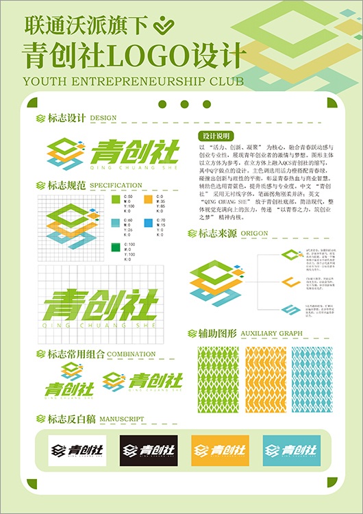 命题名称:01 联通沃派 参赛编号:Aa01-14-010-0025 作品名称:青创星驿——青创社LOGO设计