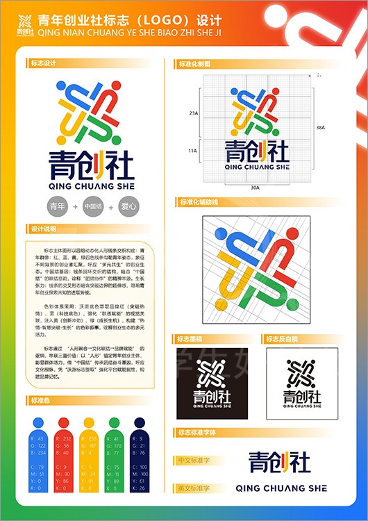 命题名称:01 联通沃派 参赛编号:Aa01-18-057-0024 作品名称:青年创业社标志vi设计