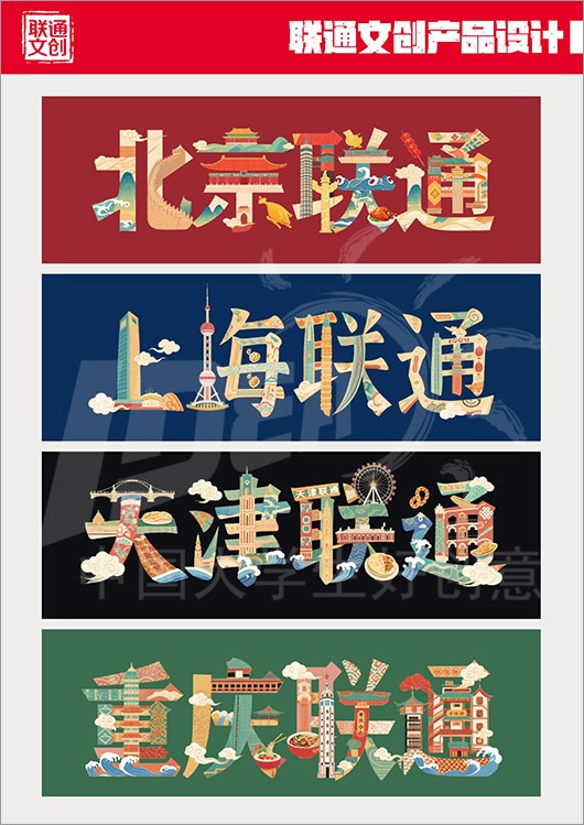 命题名称:02 联通文创 参赛编号:Aa02-22-061-0001 作品名称:联通四城文创设计