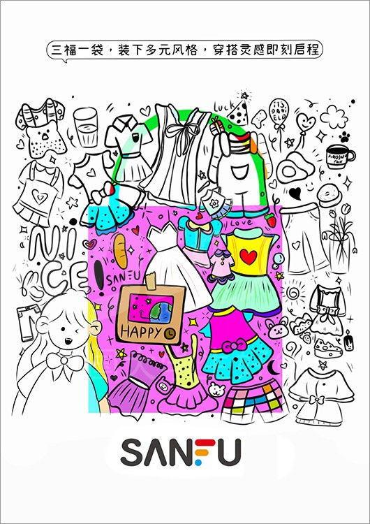 命题名称:07 SANFU三福 参赛编号:Aa07-06-081-0002 作品名称:勾勒生活万象的创意口袋