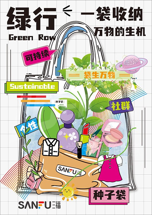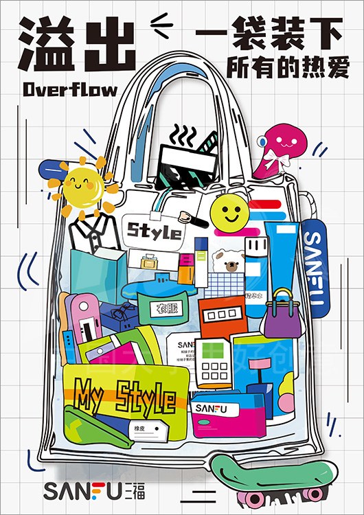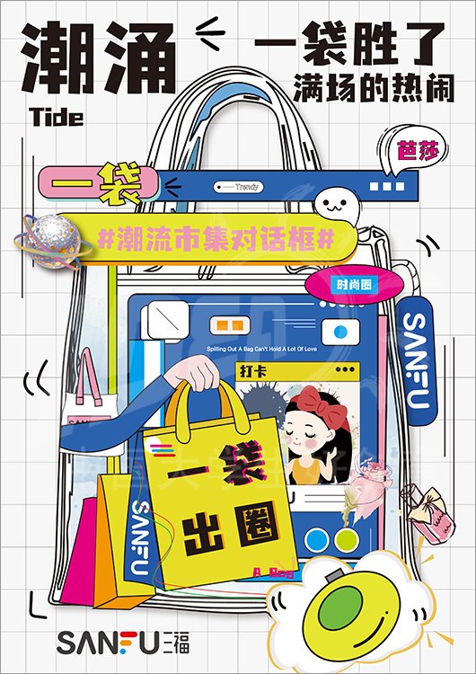 命题名称:07 SANFU三福 参赛编号:Aa07-07-007-0014 作品名称:三福潮袋-装下多元生活
