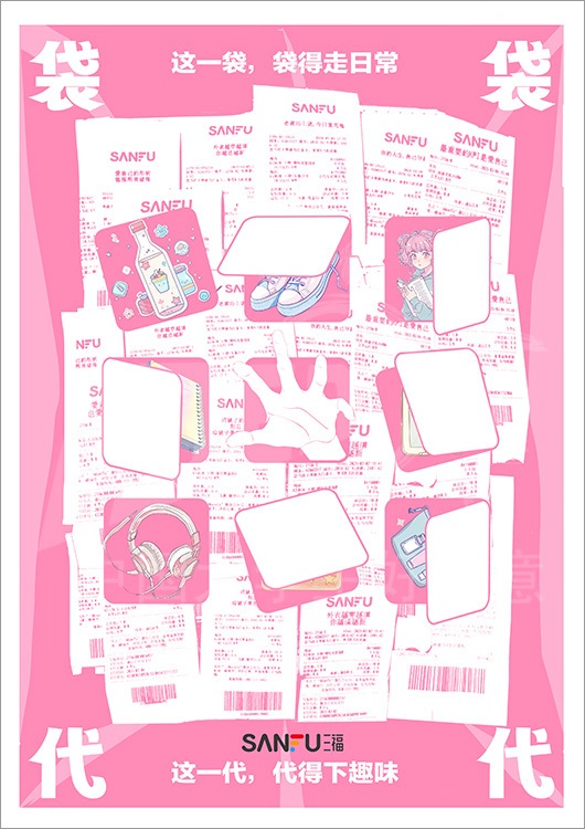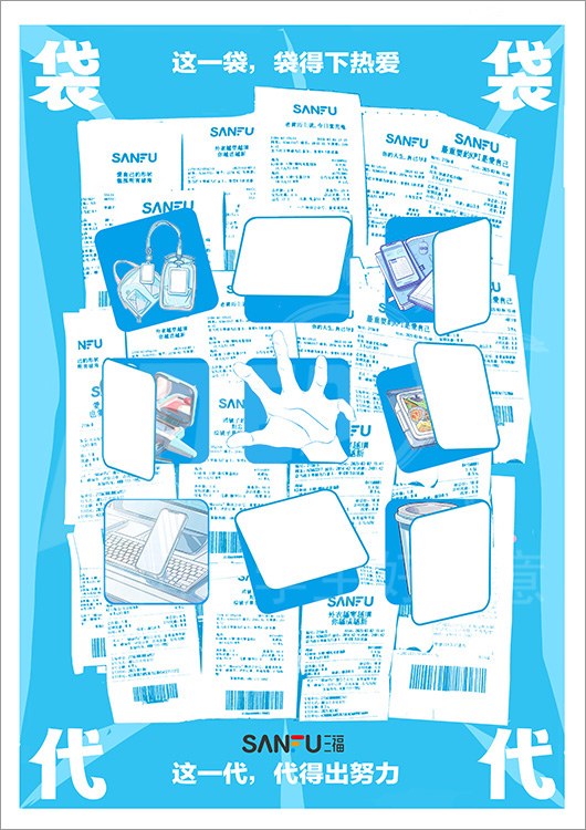 命题名称:07 SANFU三福 参赛编号:Aa07-16-015-0039 作品名称:这一袋,这一代