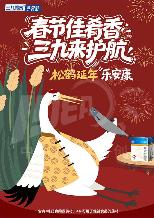 命题名称:12 三九胃泰牌养胃舒 参赛编号:Aa12-20-042-0144 作品名称:春节佳肴香三九来护航