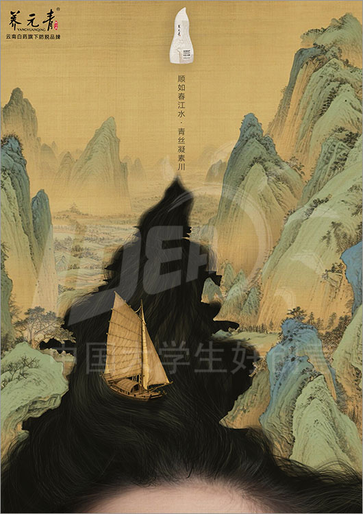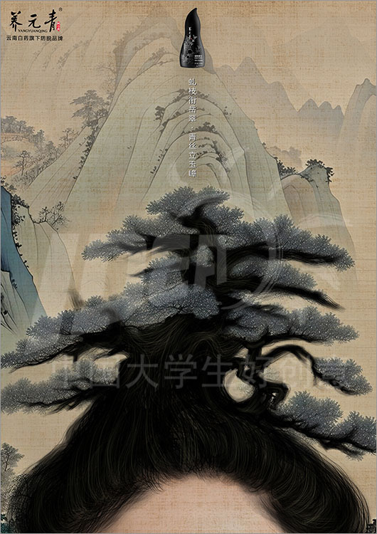 命题名称:14 养元青 参赛编号:Aa14-19-047-0006 作品名称:山水入画,萃养青丝