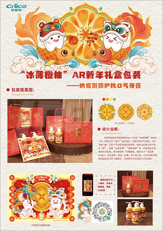 命题名称:10 纳爱斯 参赛编号:Ab10-18-042-0003 作品名称:"冰薄橙柚"AR新年礼盒包装