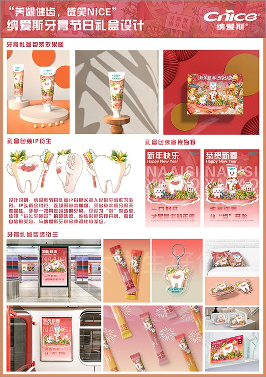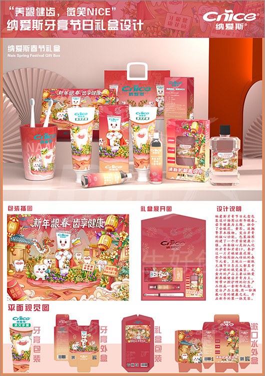 命题名称:10 纳爱斯 参赛编号:Ab10-20-012-0001 作品名称:纳爱斯牙膏节日礼盒设计
