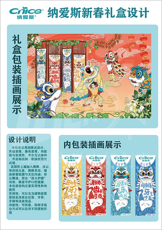命题名称:10 纳爱斯 参赛编号:Ab10-23-022-0016 作品名称:瑞狮启春护牙礼盒