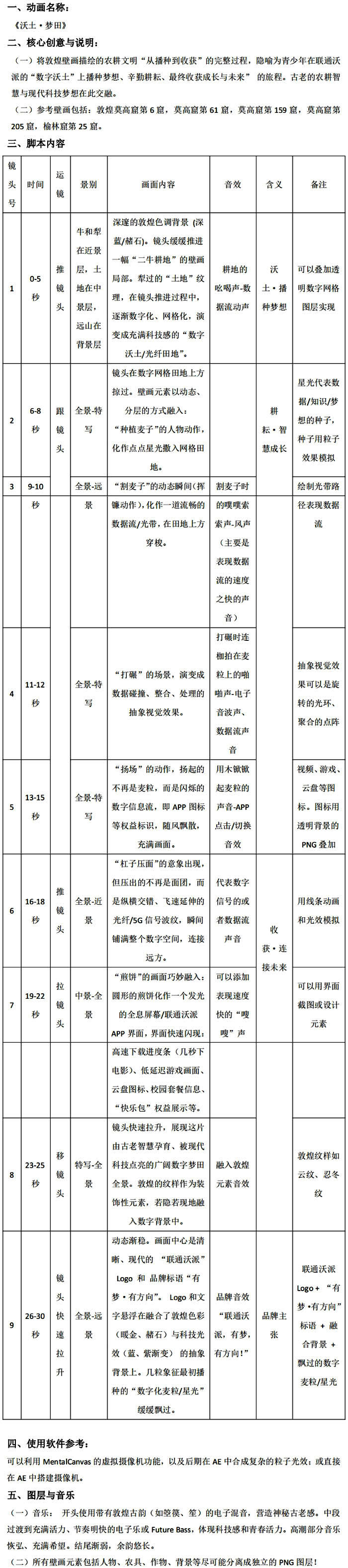 命题名称:01 联通沃派 参赛编号:G01-26-008-0009 作品名称:沃土·梦田 创意脚本