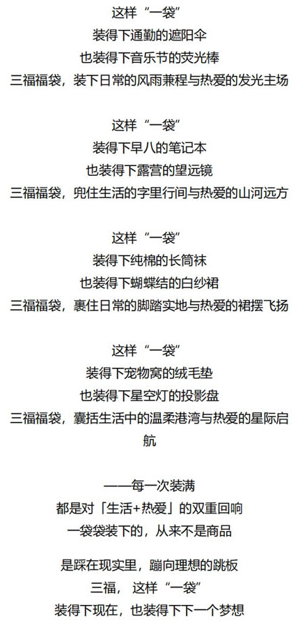 命题名称:07 SANFU三福 参赛编号:G07-03-002-0011 作品名称:开袋,见新我