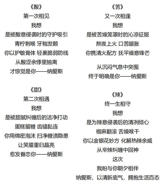 命题名称:10 纳爱斯 参赛编号:G10-18-013-0033 作品名称:酸甜苦辣尝遍,唯它是心安