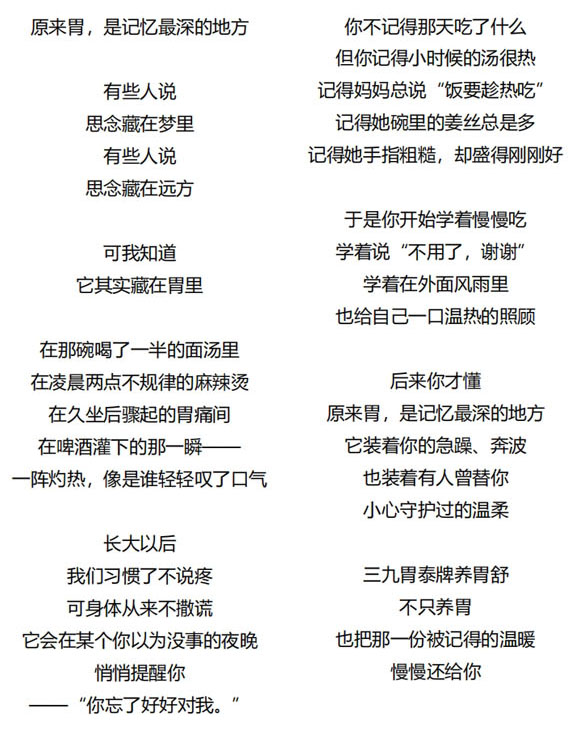 命题名称:12 三九胃泰牌养胃舒 参赛编号:G12-12-016-0048 作品名称:原来胃,是记忆最深的地方