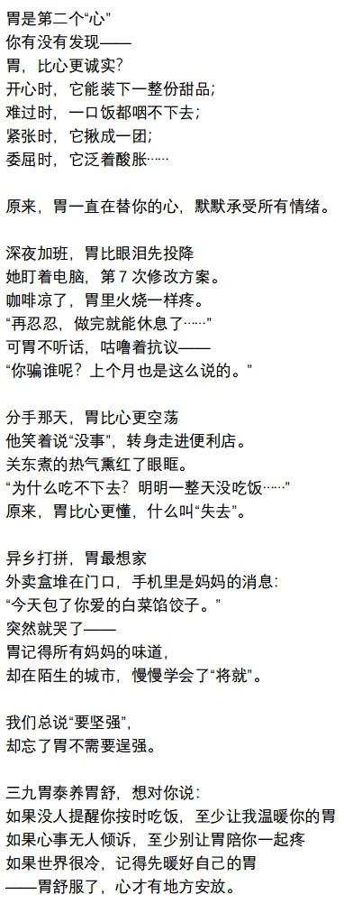 命题名称:12 三九胃泰牌养胃舒 参赛编号:G12-20-006-0488 作品名称:胃是第二个"心"