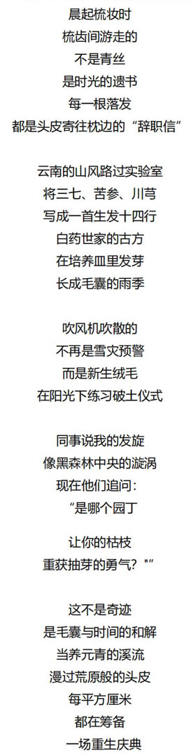 命题名称:14 养元青 参赛编号:G14-21-020-0001 作品名称:养元清的头皮诗篇