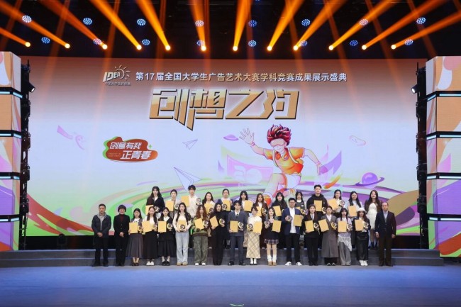 2025年12月6日,第17届全国大学生广告艺术大赛(简称大广赛)学科竞赛成果展示盛典在北京政协礼堂顺利举办!作为联合协办单位的广州朗圣药业有限公司受邀参加现场盛典,并为获奖师生送上祝福。