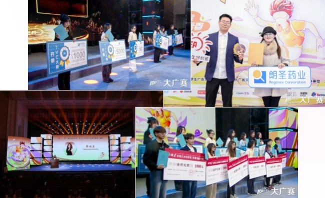 在颁奖典礼现场,朗圣药业品牌总监邬林原为获得朗圣药业企业特别奖及大广赛全国一等奖的获奖师生颁奖。同时,品牌总监邬林原在现场代表广州朗圣药业有限公司上台讲话,对新生代的创意作品表示肯定,并对未来与大广赛的深度合作表达了美好愿景。