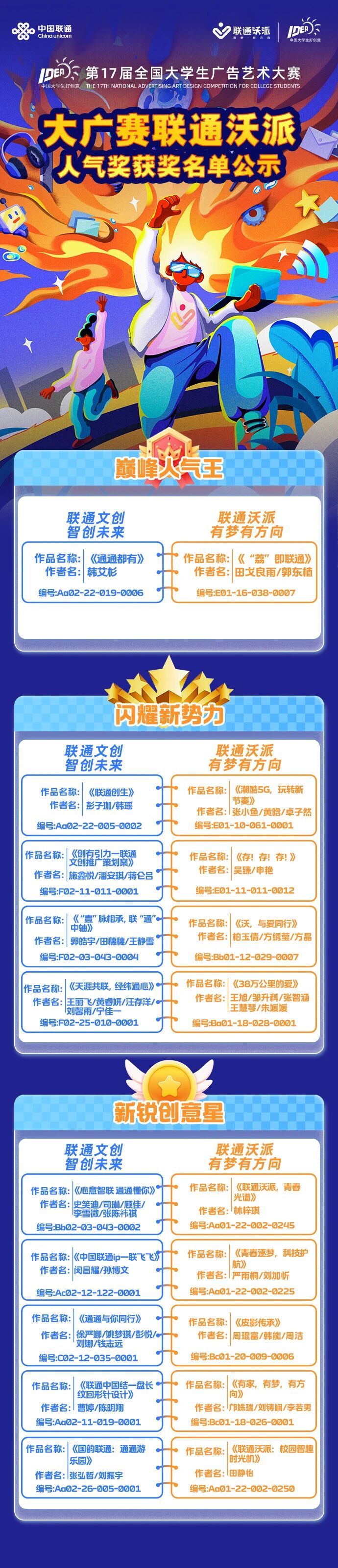 第17届大广赛联通沃派人气奖获奖名单发布啦!