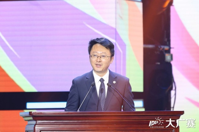 随后,中国传媒大学副校长杨懿代表举办方之一中国传媒大学致辞。他表示,中国传媒大学作为赛事长期举办单位,二十年来始终倾力护航,为赛事的顺利推进与持续发展提供了全方位支撑。杨懿指出,本届大赛共收到来自全国近176万学子提交的58万余组创意作品,这些成果汇聚了广大师生的热忱与才华,展现了青年一代以创新思维推动行业发展的蓬勃力量。