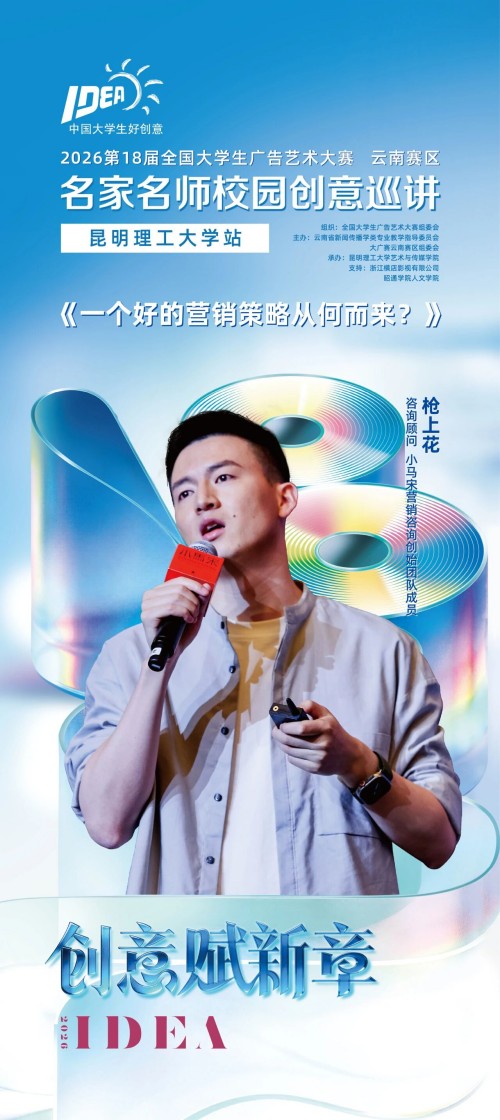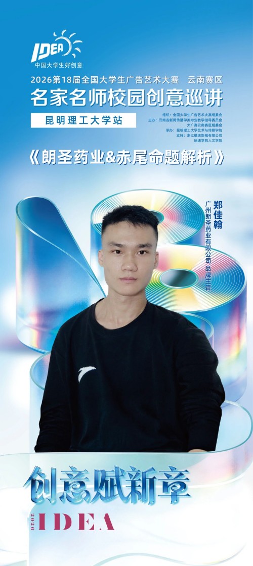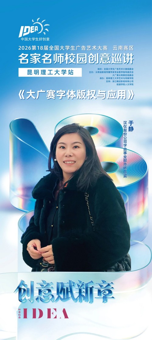 来自联合协办单位朗圣药业、赤尾的嘉宾将来到现场,与师生们面对面,共解创作中的实战难点。来自字由的于静老师将带来《大广赛字体版权与应用》分享,枪上花老师将为大家带来精彩主题演讲《一个好的营销策略从何而来?》。欢迎云南赛区的同学们踊跃参与,在现场交流中收获灵感与突破!