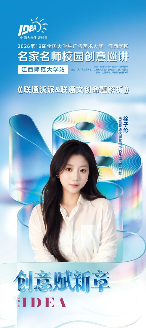 来自首席合作品牌联通沃派、命题品牌联通文创、超能植愈系列的企业嘉宾将齐聚现场,与师生们面对面,共解创作中的实战难点。金定海老师将为大家带来精彩主题演讲《你有钩子吗——AI时代的创意实现》。欢迎江西赛区的同学们踊跃参与,在现场交流中收获灵感与突破!