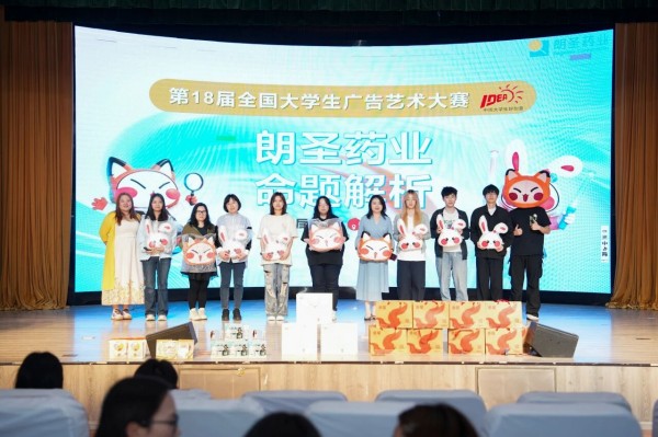 来自联合协办单位朗圣药业的广州朗圣药业有限公司品牌部总监邬林原女士,围绕第18届大广赛朗圣药业与赤尾两大命题展开深度解析。在朗圣命题方面,她着重传递了“随心所育,爱无阻爱”的主题内涵,倡导健康、科学的两性观念,鼓励同学们关注生殖健康与自主选择权。在赤尾命题方面,她介绍了赤尾“以科技赋能亲密体验”的国货标杆定位,并解读了品牌“薄度+功能+健康”的三维创新理念,引导同学们从科技与情感结合的角度进行创意表达。最后,她在现场抽取了10位幸运儿,送上了朗圣药业提供的朗圣礼包。