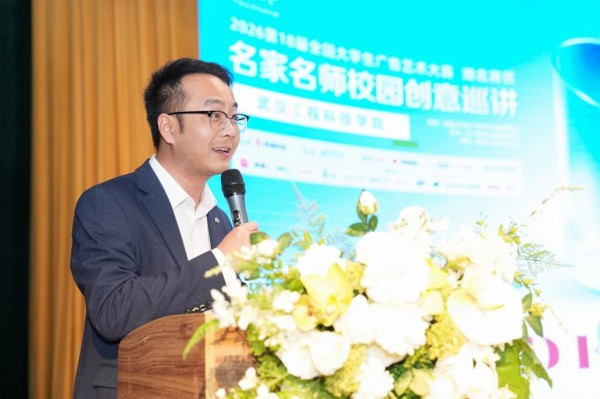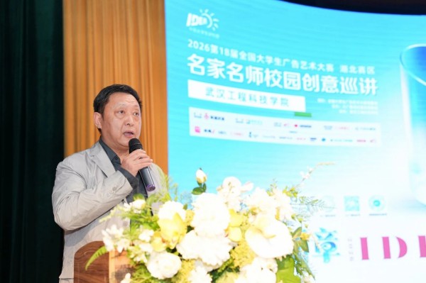 为激发大学生的创新精神和团队协作意识,响应2026年全国大学生广告艺术大赛关于挖掘优秀广告人才、促进产教融合的号召,4月17日下午,第18届全国大学生广告艺术大赛湖北赛区名家名师校园创意巡讲在武汉工程科技学院图书馆5区报告厅举行。活动由全国大学生广告艺术大赛组委会组织,大广赛湖北赛区组委会主办,武汉工程科技学院新视界设计产业学院承办。全国大广赛评委、北京工商大学传媒设计学院副教授张帆,大广赛湖北赛区组委会秘书长、武汉大学新闻传播学院教师王晔,武汉联通沃派品牌&青创社宜讲官李恩辉先生,广州朗圣药业有限公司品牌部总监邬林原女士,云南白药集团健康品事业群营销企划部副总监管毓星女士,武汉工程科技学院艺术与传媒学院院长沈祥胜,副院长魏敏出席活动,各学院教师及学生代表参加活动。