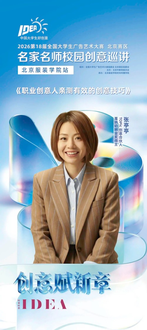 4月23日,大广赛名家名师校园创意巡讲来到北京服装学院。我们把课堂搬到校园里,让创意在古都的脉络中悄然生长,让想象在时代的浪潮里柔软奔涌。