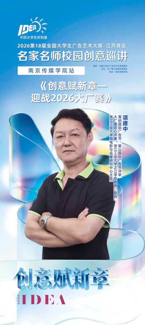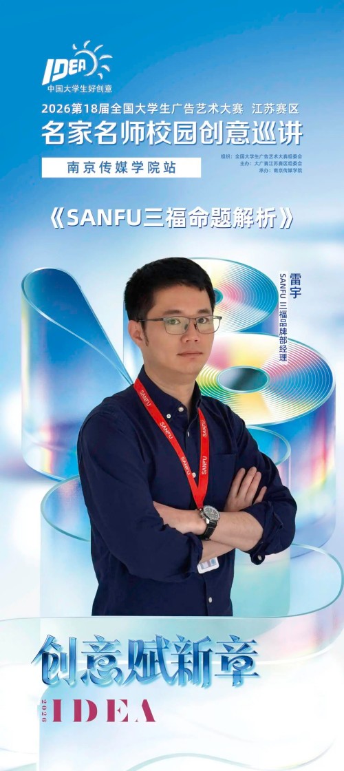 命题品牌SANFU三福的嘉宾将来到现场,与师生们面对面,共解创作中的实战难点。项建中老师将为大家带来精彩主题演讲《创意赋新章——迎战2026大广赛》。欢迎江苏赛区的同学们踊跃参与,在现场交流中收获灵感与突破!